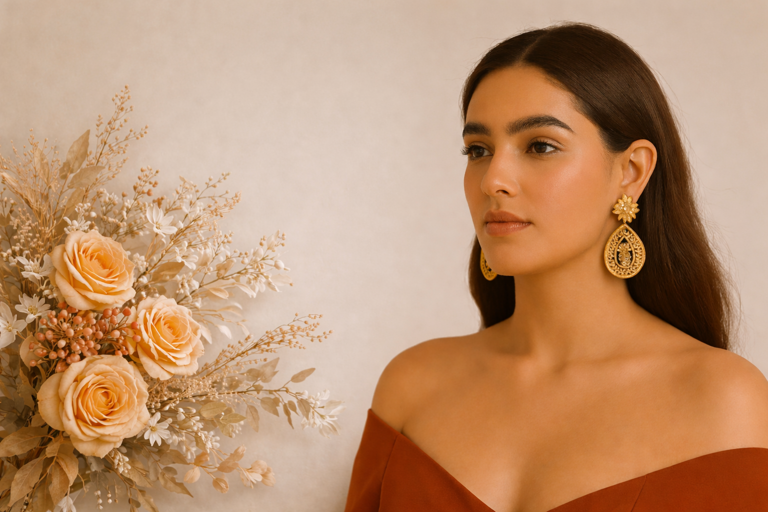 Luna Dual-Tone Pearl Korean Stud Earrings (Elegant Maroon)
