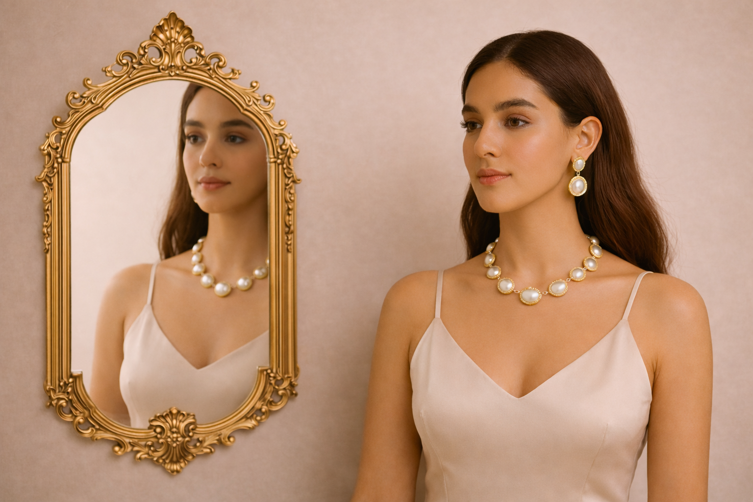 Luna Dual-Tone Pearl Korean Stud Earrings (Elegant Blue)
